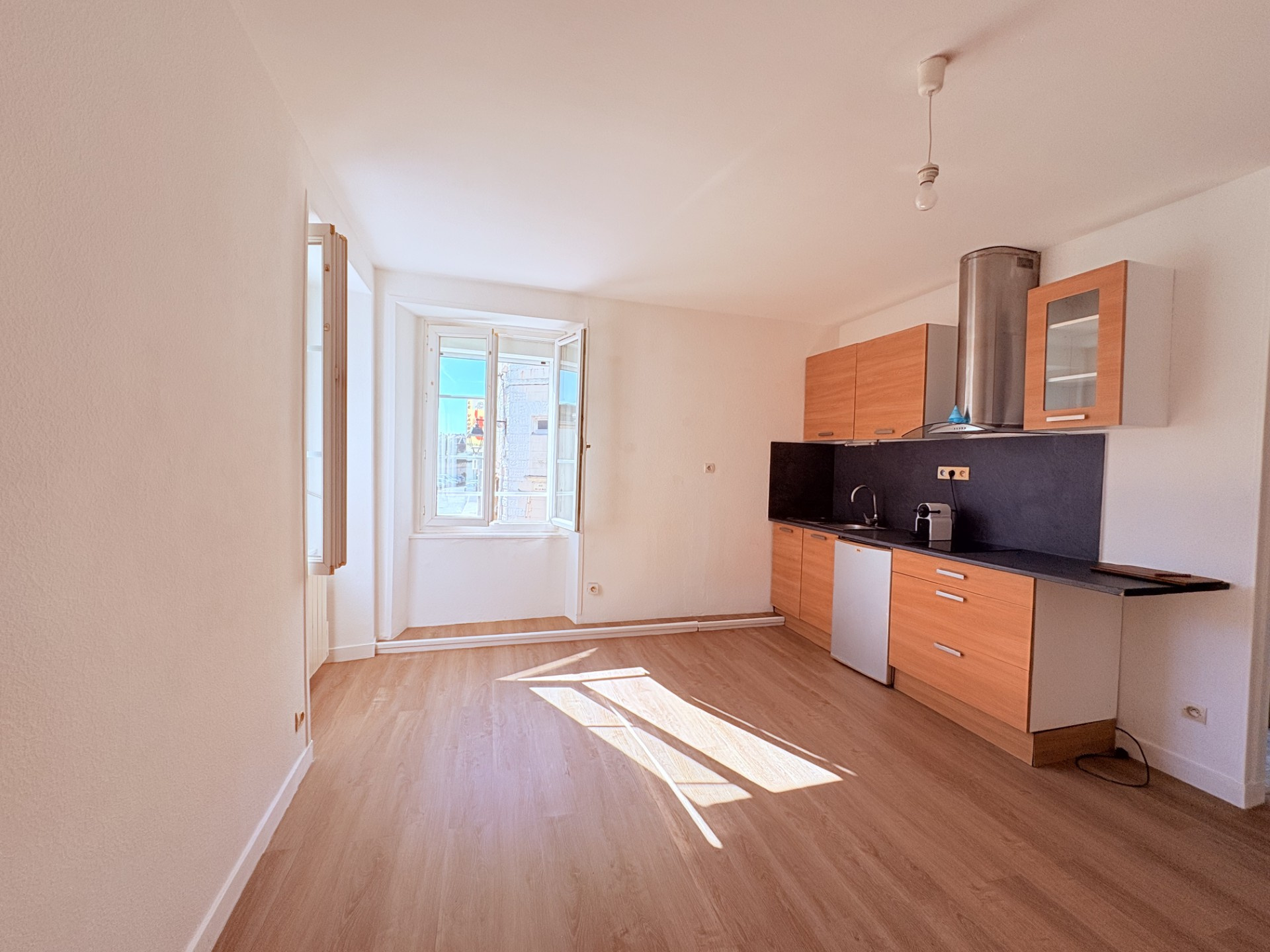 L’appartement se compose : d’une pièce de vie très lumineuse, offrant un bel espace séjour avec cuisine équipée pratique et fonctionnelle. Une salle de bain avec fenêtre et WC.